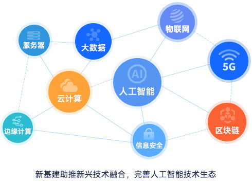 2017至2019年,连续三年的政府工作报告中均提及加快人工智能产业发展;2020年,人工智能更是与5G基站、大数据中心、工业互联网等一起被列入新基建范围,明确人工智能作为“新基建”建设重要一环,在“新基建”背景下,人工智能将为智能经济的发展和产业数字化转型提供底层支撑,推动人工智能与5G、云计算、大数据、物联网等领域深度融合。