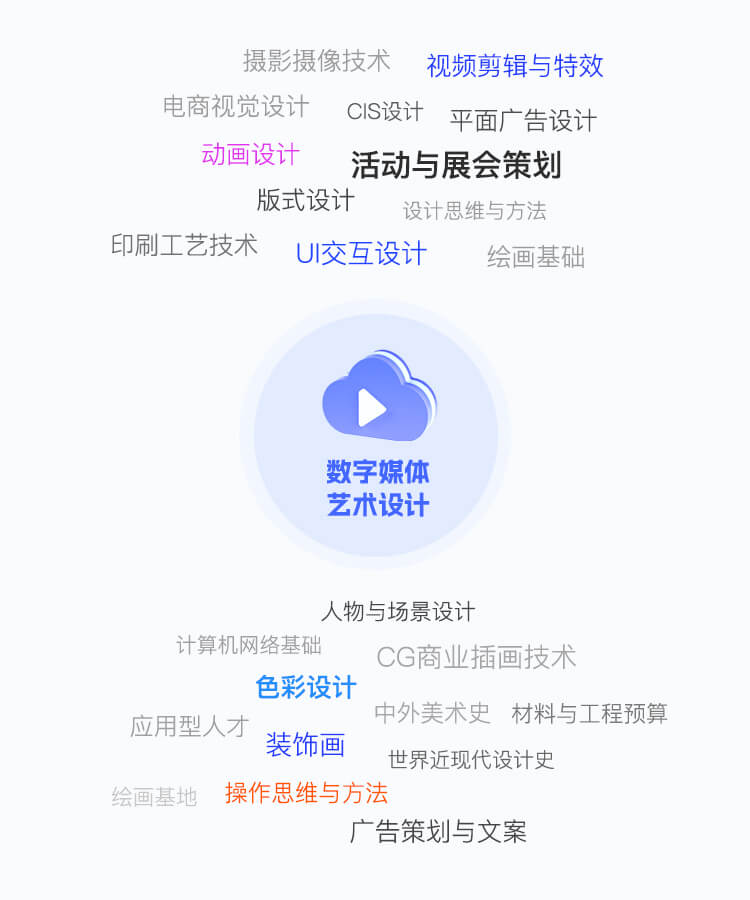 从淘宝美工到多平台电商运营,从互联网项目需求分析到APP低保真、高保真交互展示,从游戏人物与场景设计到VR、AR虚拟现实,本方向旨在培养能够横跨平面与互联网电商,能够快速有效解决PC端、移动端设计需求,能够以用户体验为中心进行的各种互联网产品的优化、更新迭代,技术全面并且具有可持续发展能力的高效设计人才。