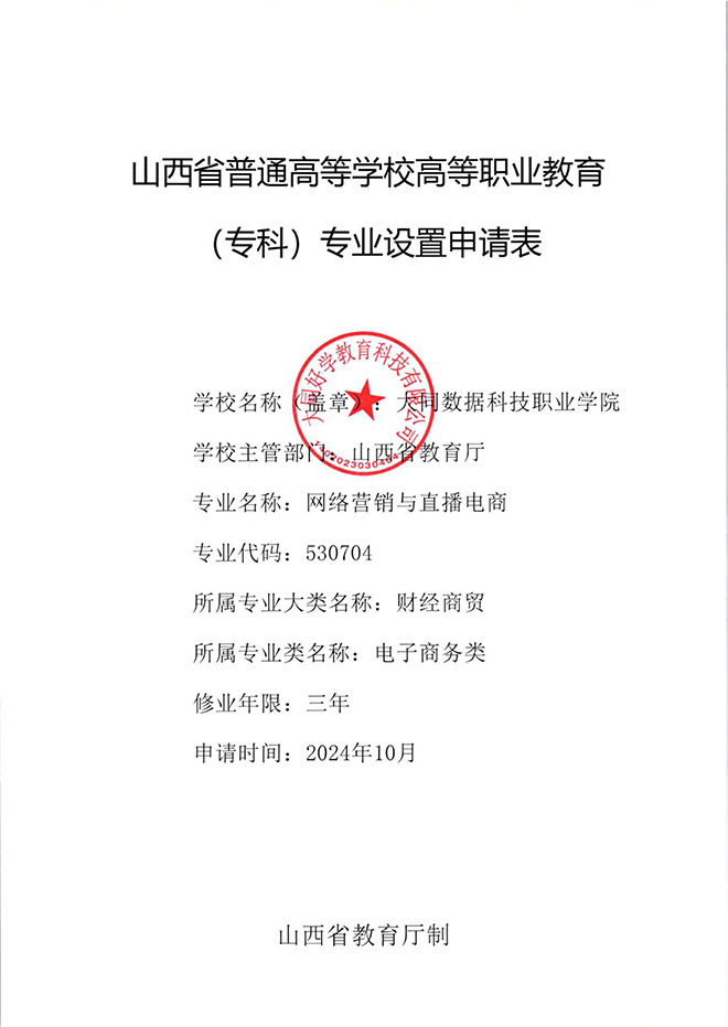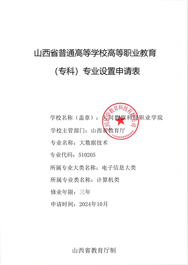 大同数据科技职业学院 专业设置材料