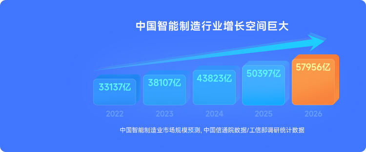近年来,全国各地加快推进制造业转型升级,智能制造行业是当今世界制造业的重要发展方向之一。工信部等八部门曾联合对外发布《“十四五”智能制造发展规划》,明确到2035年,规模以上制造业企业全面普及数字化网络化,重点行业骨干企业基本实现智能化。 智能制造将为设备和软件行业带来机会,机器人、传感器、工业软件、3D打印等都蕴含百亿甚至千亿的市场容量。根据我国智能制造行业发展现状和趋势分析,预计未来几年我国智能制造行业将保持15%左右的年均复合增速,到2026年,我国智能制造行业市场规模将达5.8万亿元左右,整体来看,行业增长空间巨大。