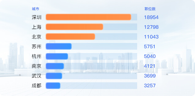 智能产品开发与应用·招聘需求量地区排名数据来源:看准网